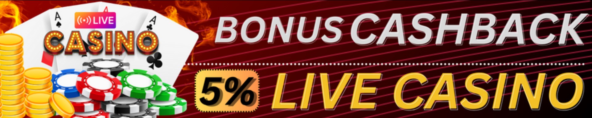 1. Bonus cashback Live Games 5% dihitung dari nilai lose member dalam periode seminggu (senin-minggu).